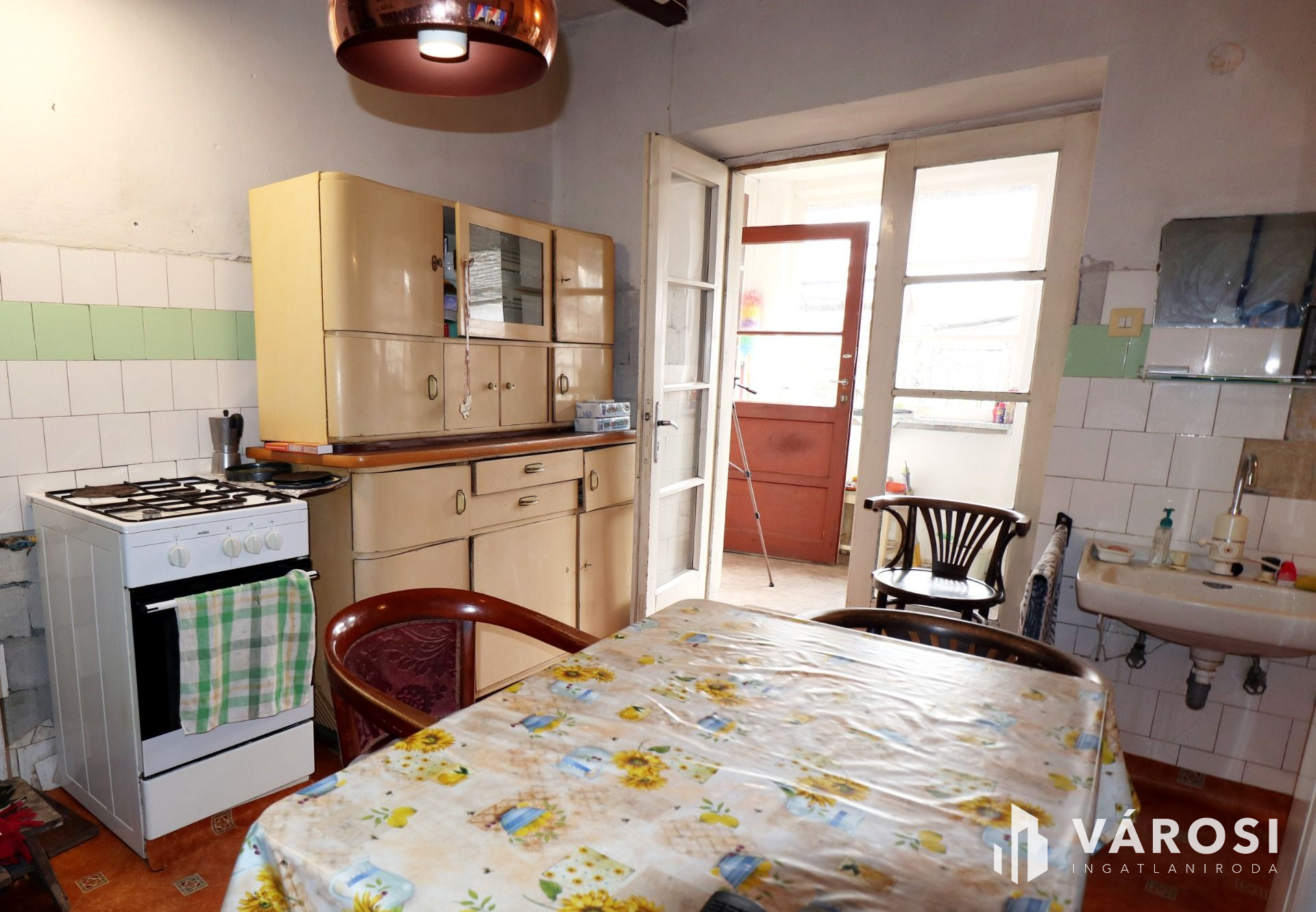 A háromszobás tágas, napos 129 m2-es lakóépület korából adódóan minimum esztétikai felújítást igényel.