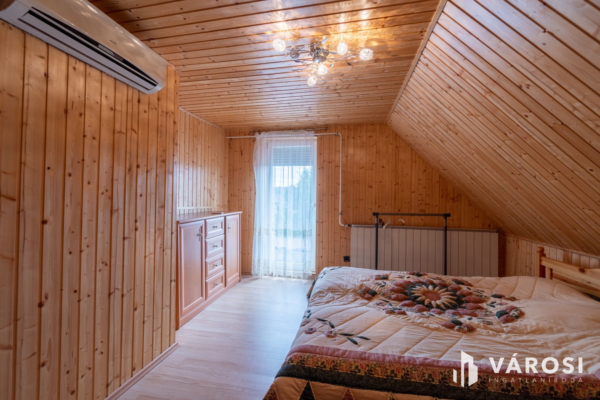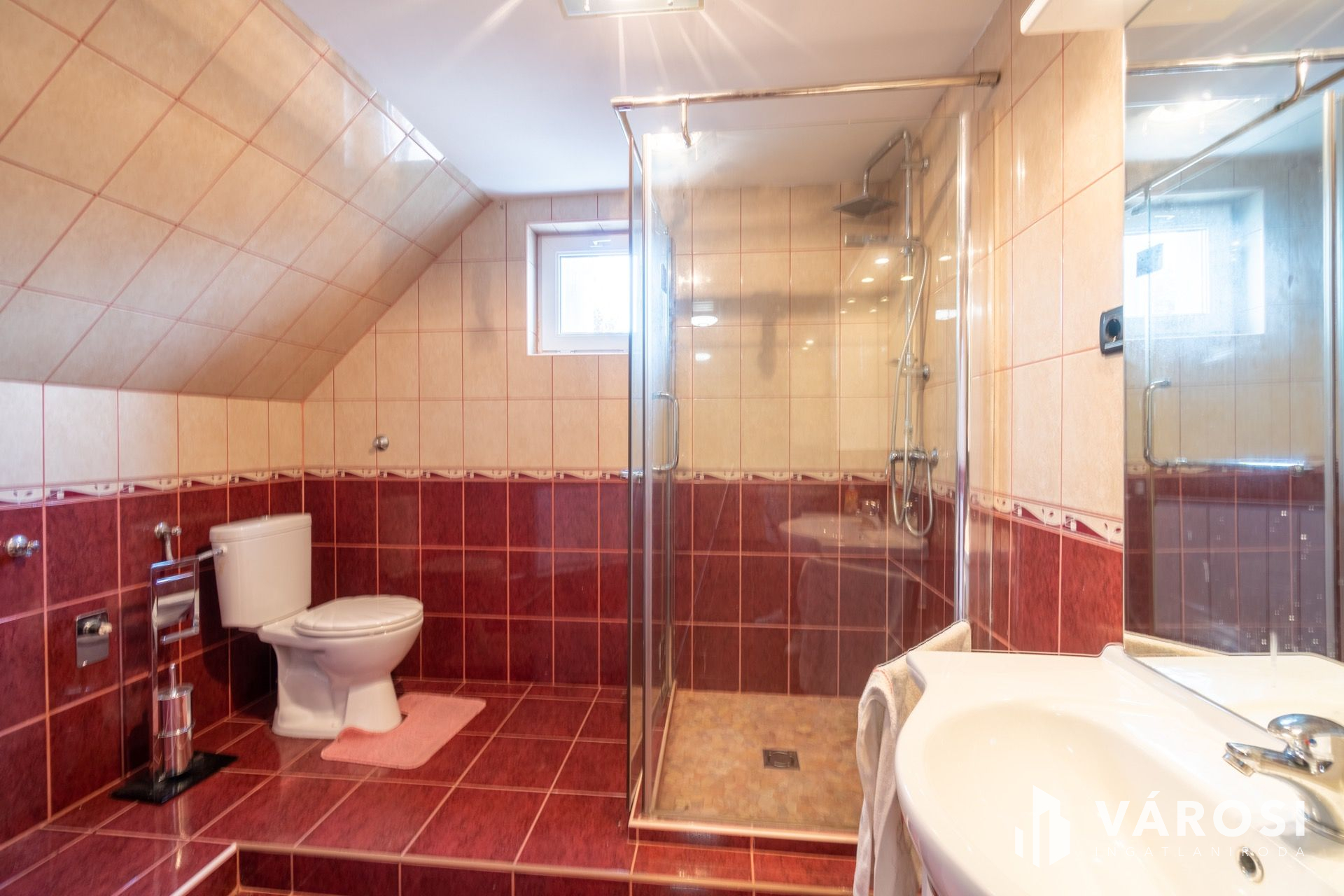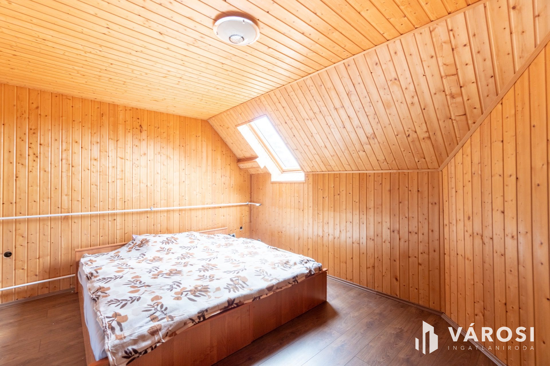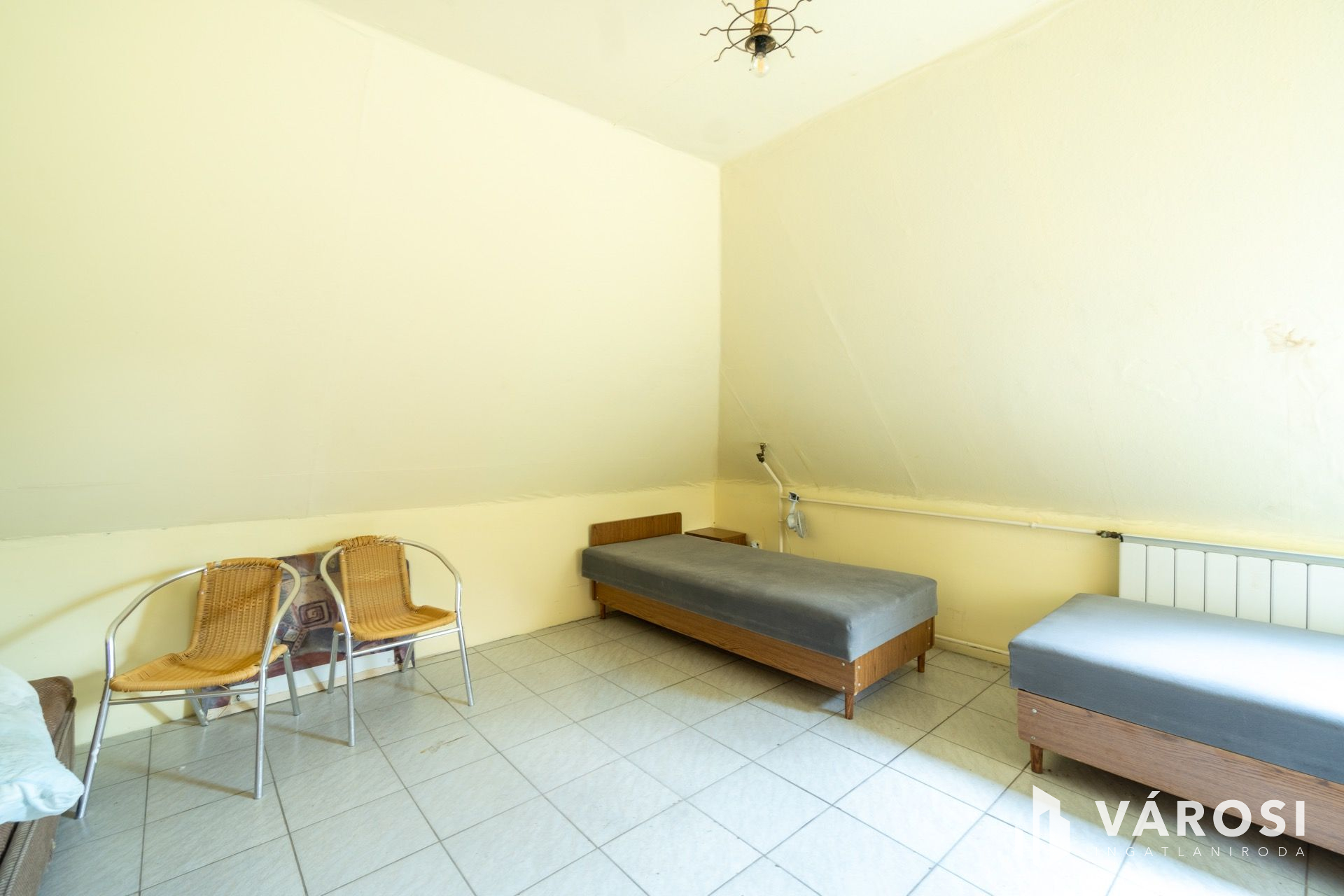 The separately formed, 120-sqm mansard is actually a totally renewed flat having two rooms, a bathroom and a spacious kitchen.