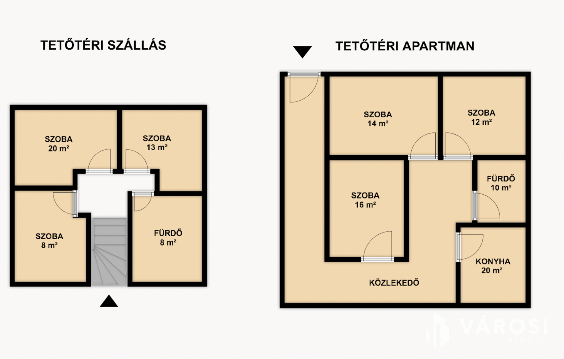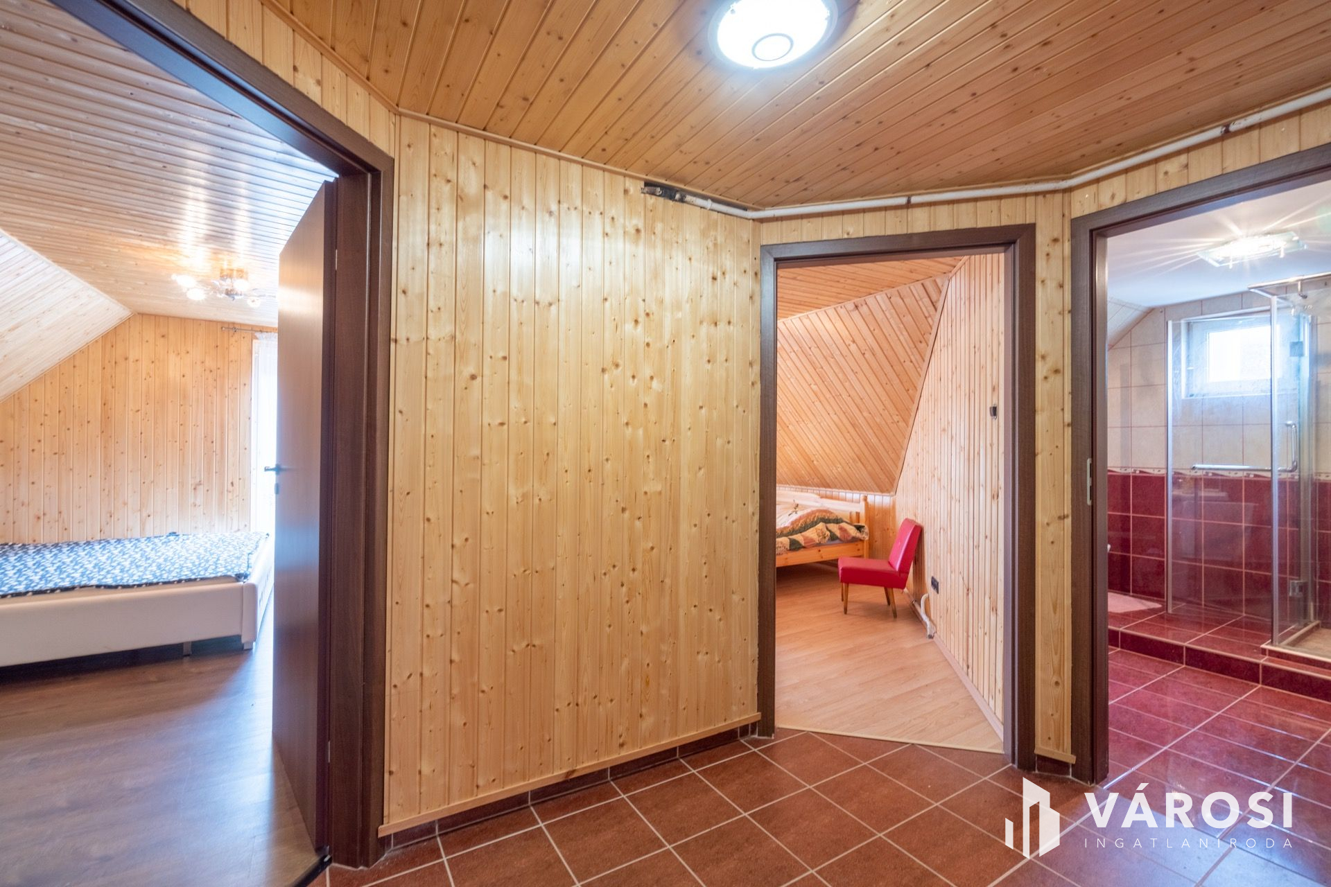 A külön kiépített 120 m²-es tetőtéri apartman tulajdonképpen egy teljesen felújított lakás, amely három különbejáratú hálószobával, egy fürdővel és egy tágas konyhával rendelkezik.