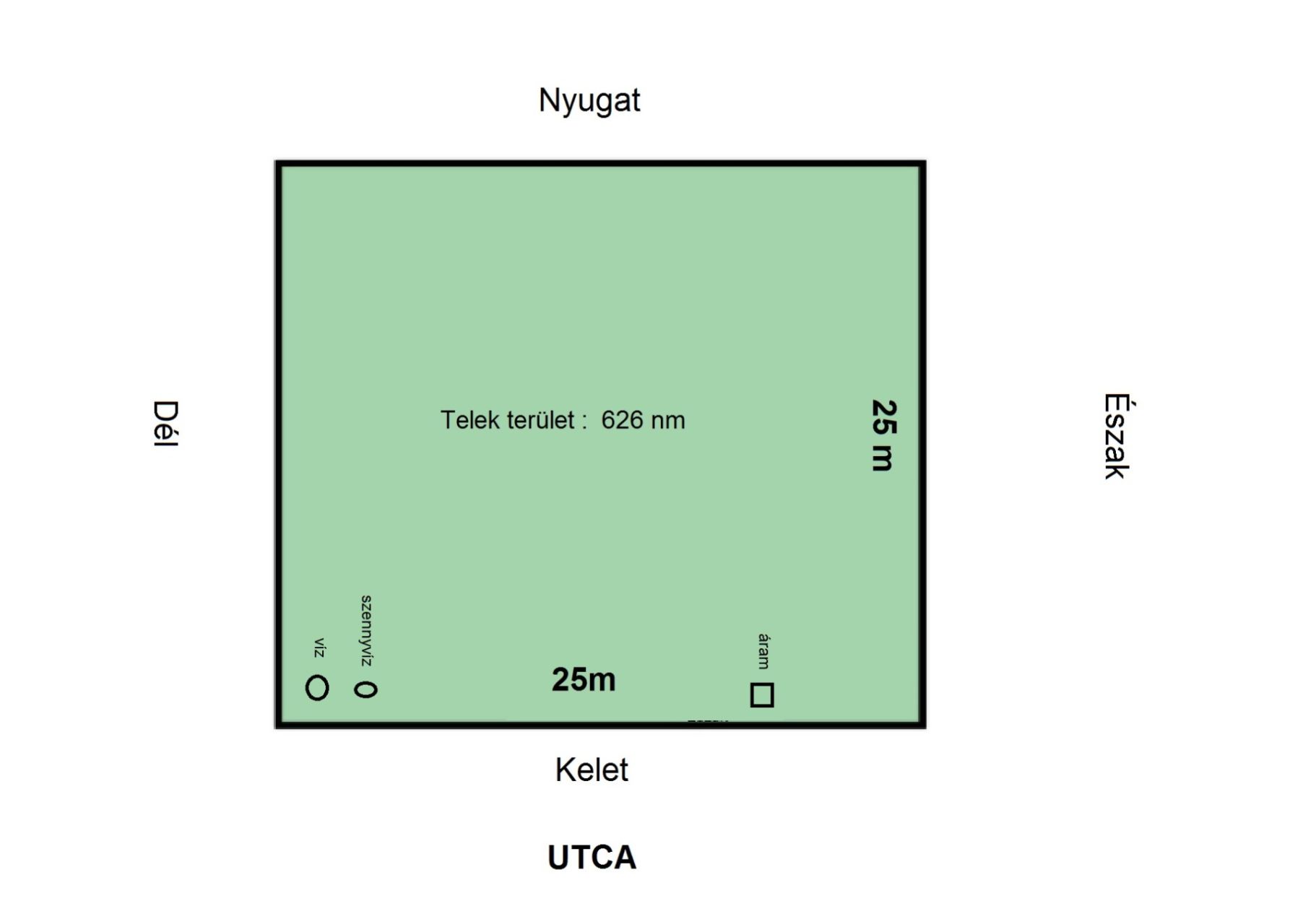 - közművek közül : áram (32A), víz, csatorna telken belül, gáz az utcában,
