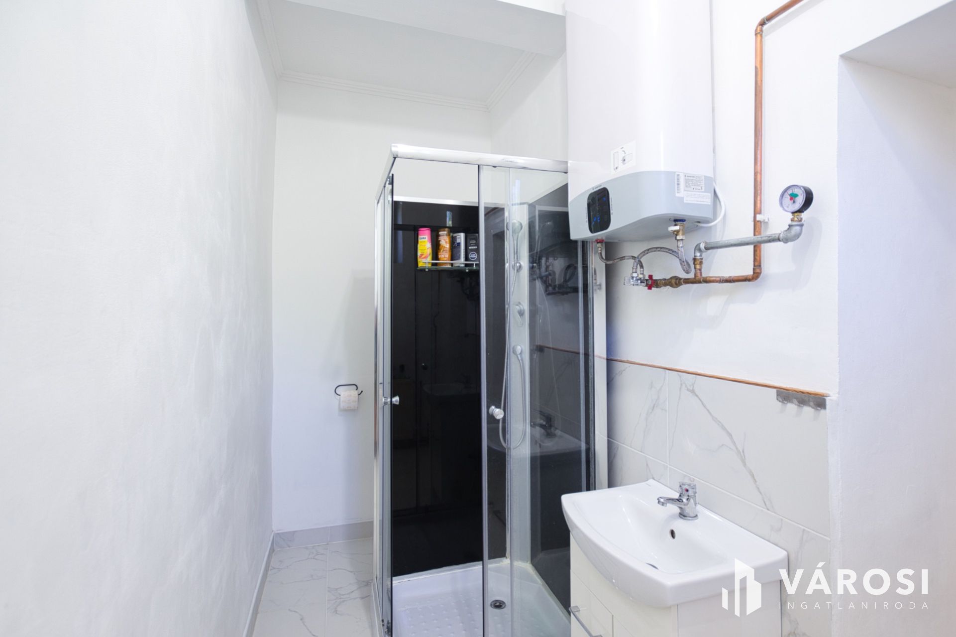 + Esztétikus, zuhanykabinos fürdőszoba + WC (5 m2)