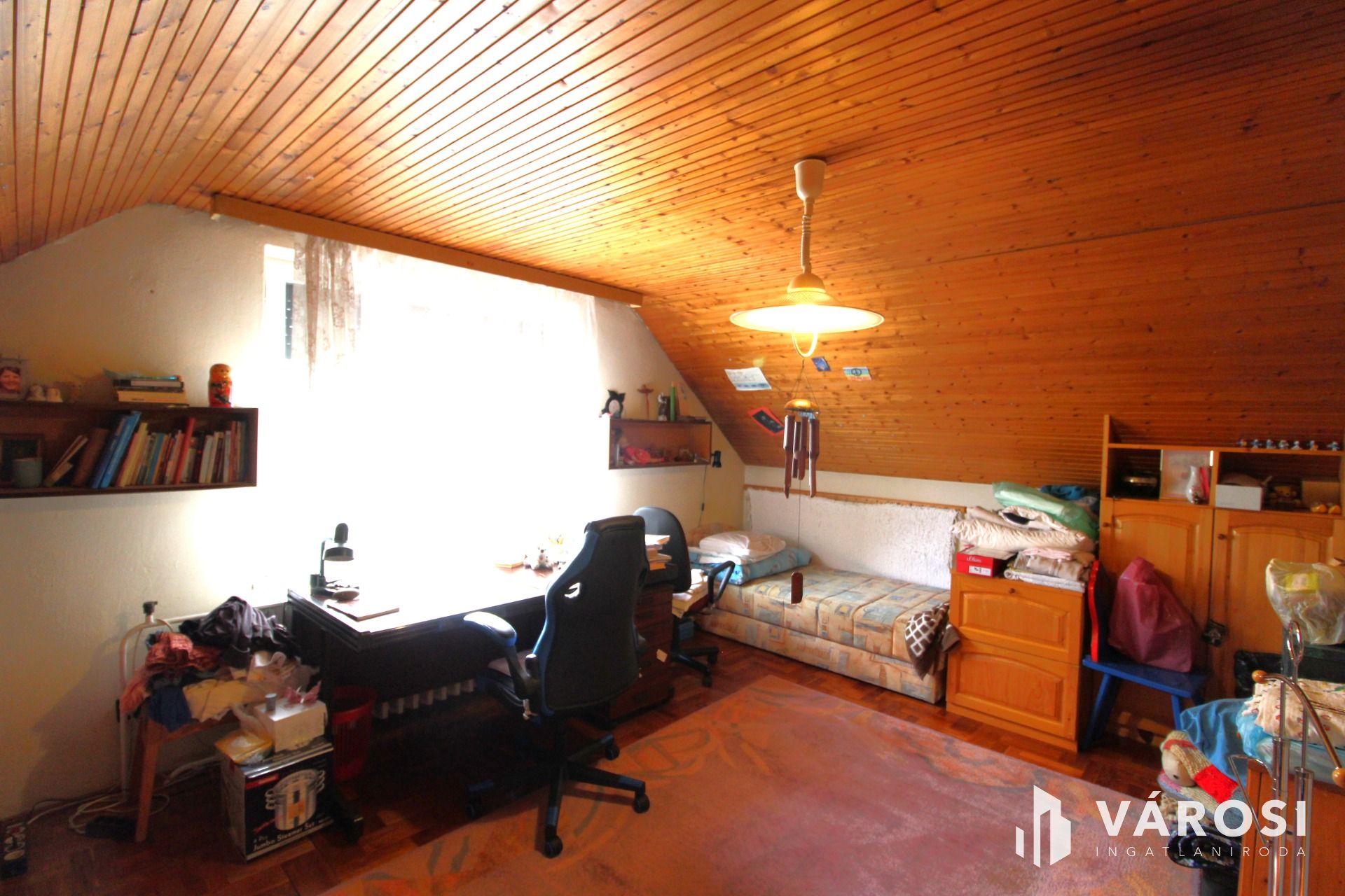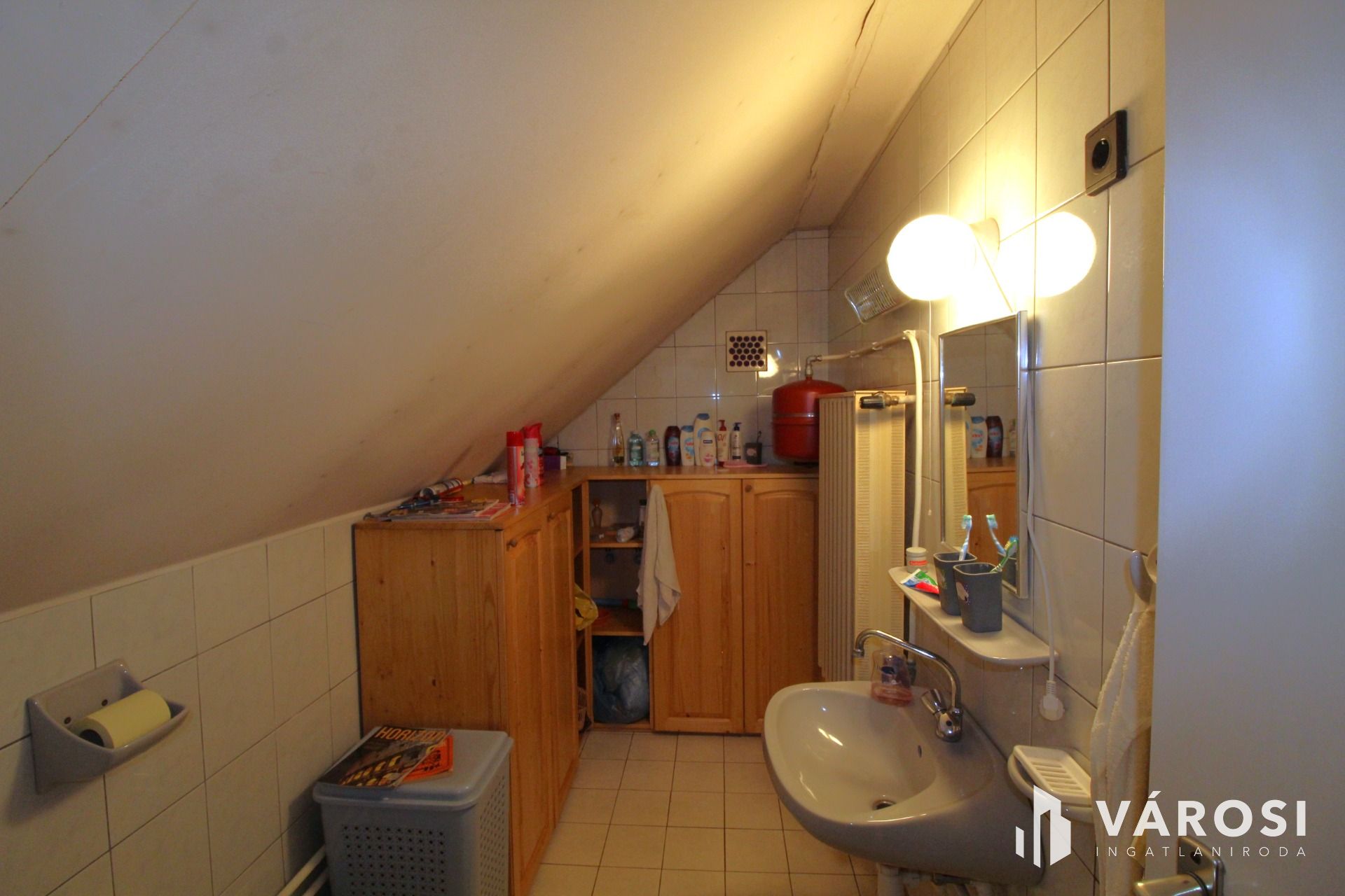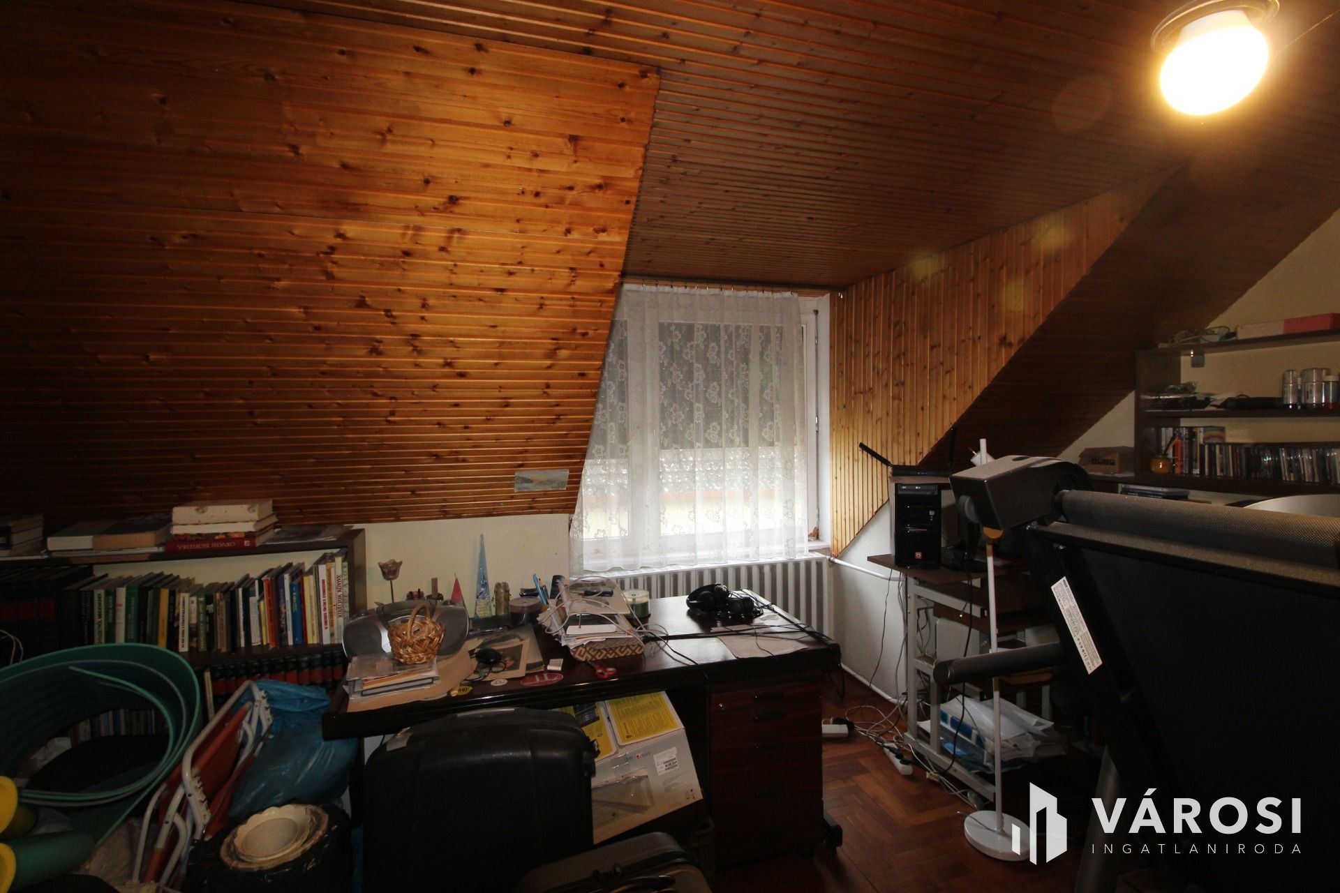A tetőtérbe fa lépcsőn lehet feljutni ahol egy dolgozószoba és két hálószoba kapott helyet. A tetőtéri részben is ki lett alakítva egy mosdó , WC helyiség melyben akár egy zuhanyzó is kialakítható.