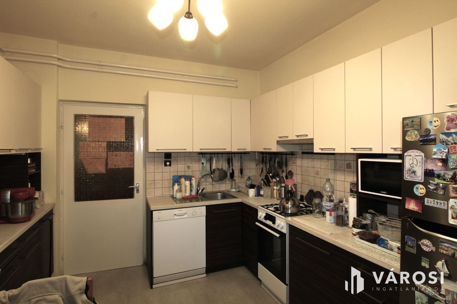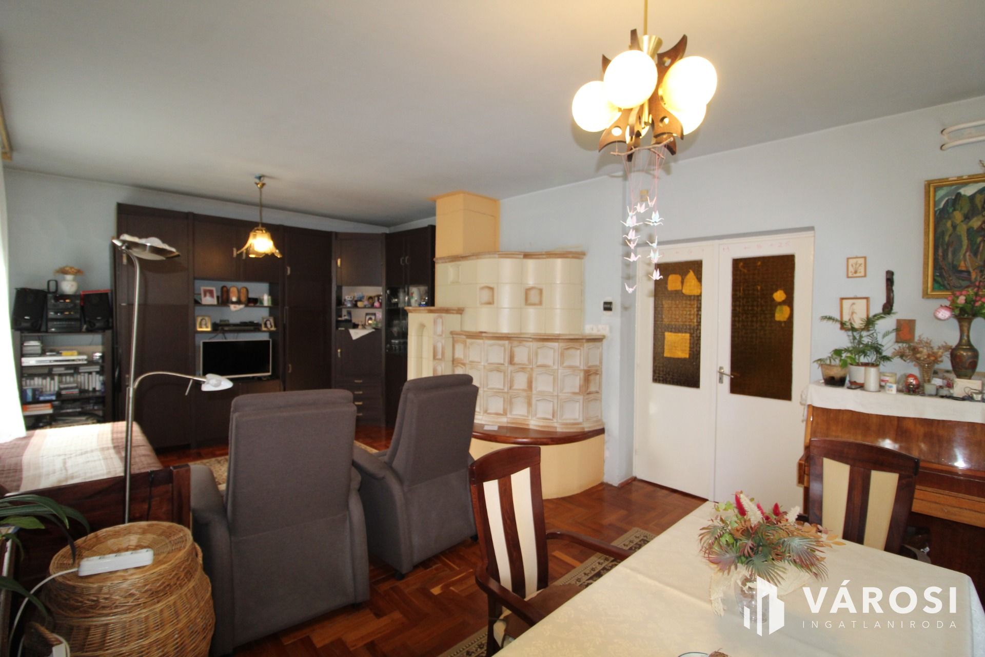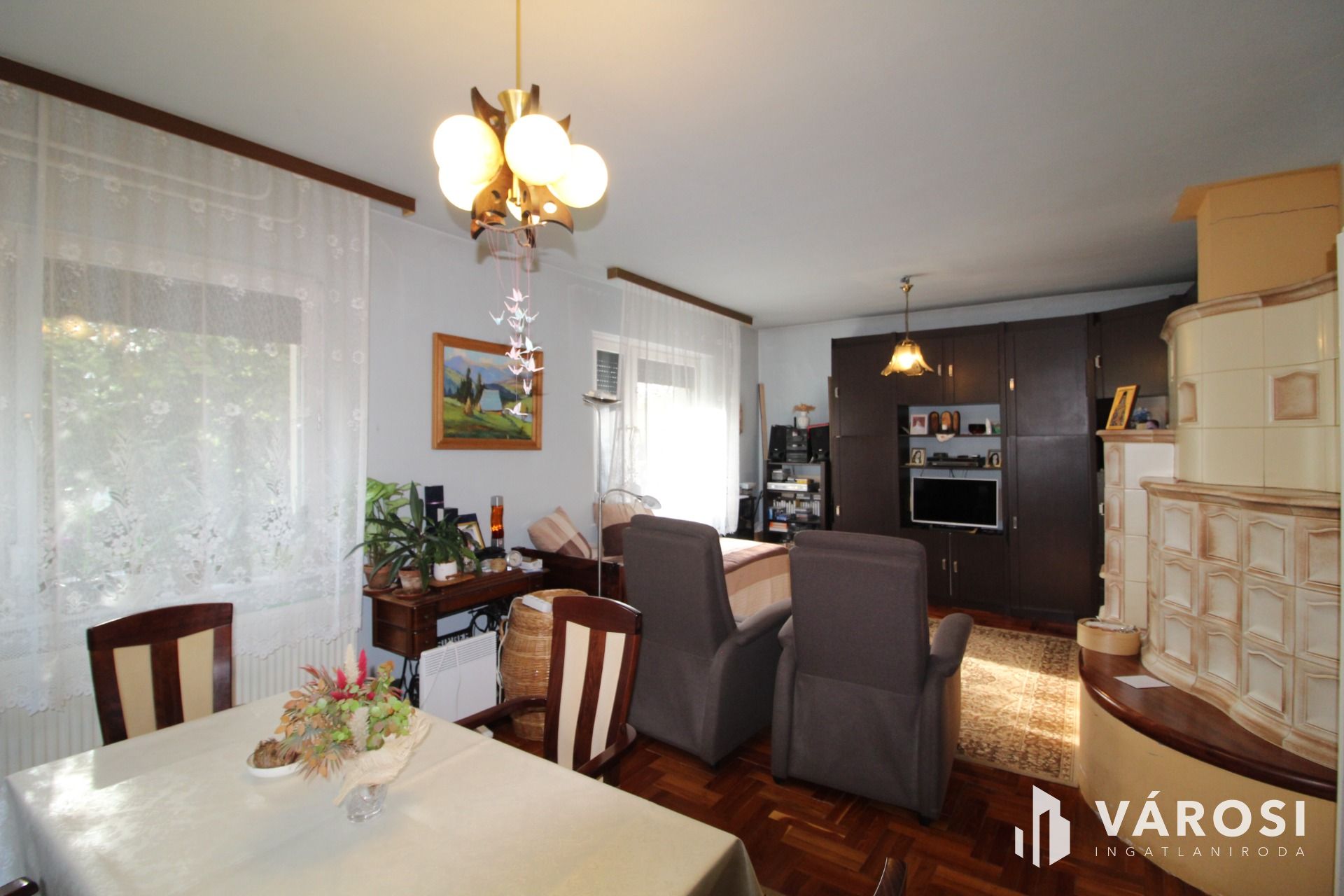 A nappali ablakai az utcára illetve a kertre néznek. A nappaliban csodálatos csempekályha ad plussz lehetőséget a téli hidegben az fűtésre. A konyha gépesített , melyeket az ár tartalmaz a konyhabútorral együtt.