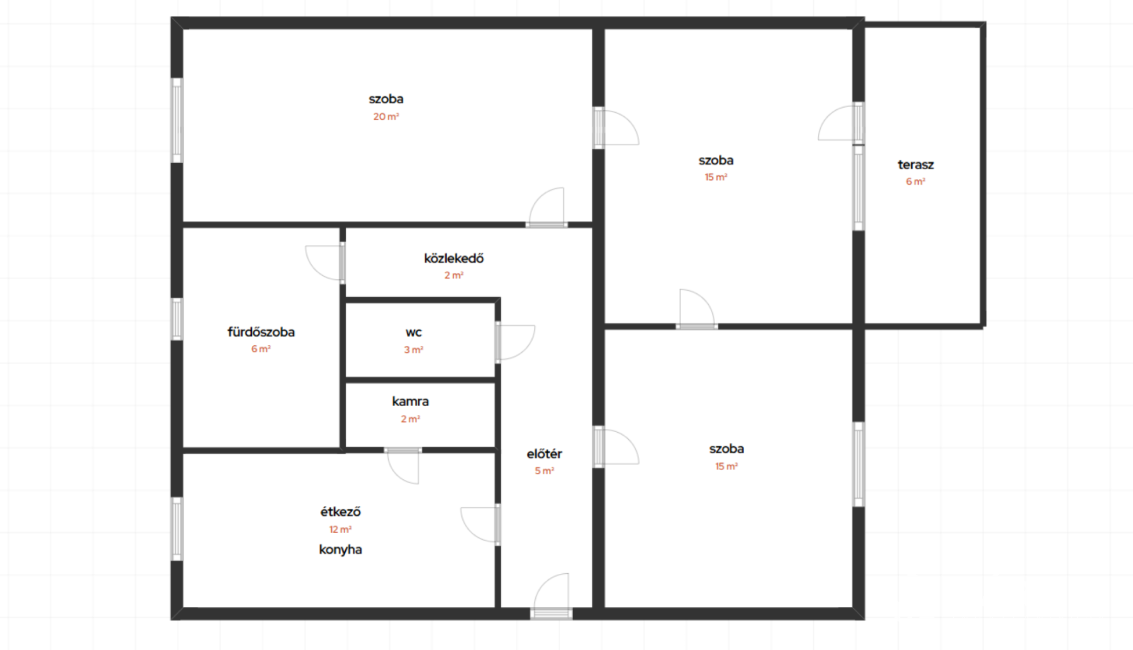 A lakásban három tágas szoba található, amelyeket a nagy ablakok és új nyílászárók tesznek világossá és energiatakarékossá. A redőnyök és szúnyoghálók biztosítják a zavartalan pihenést és a friss levegőt. A külön fürdőszoba és WC lehetővé teszi a ház kényelmes használatát több személy számára is.