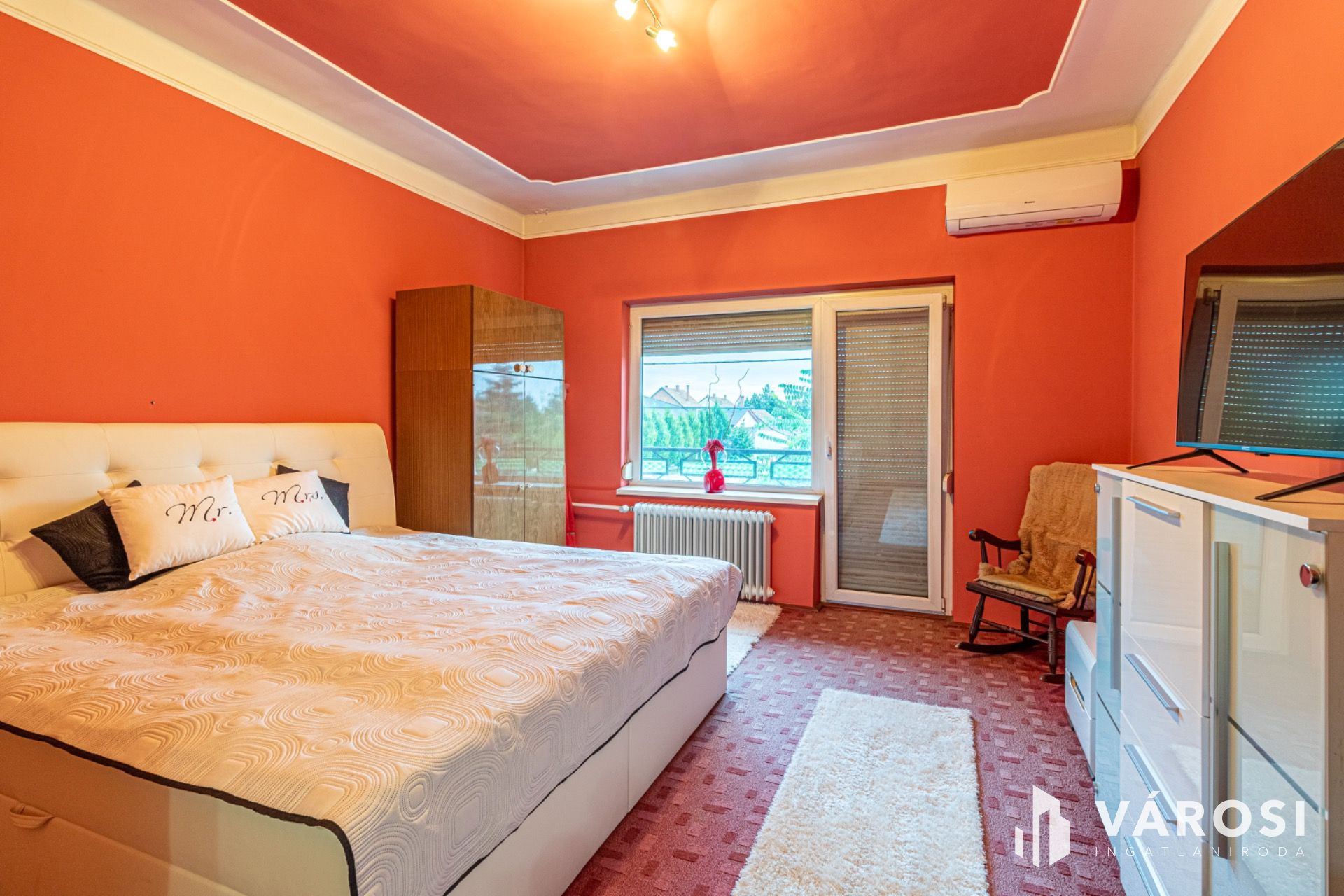 A nagyobb alapterületű lakrészben a földszinten egy tágas szobával, az emeleten három szobával rendelkezik, vegyes tüzelésű kazán+gázkazán fűtéssel, műanyag nyílászárókkal, redőnyökkel, valamint 2 hűtő-fűtő klímával.