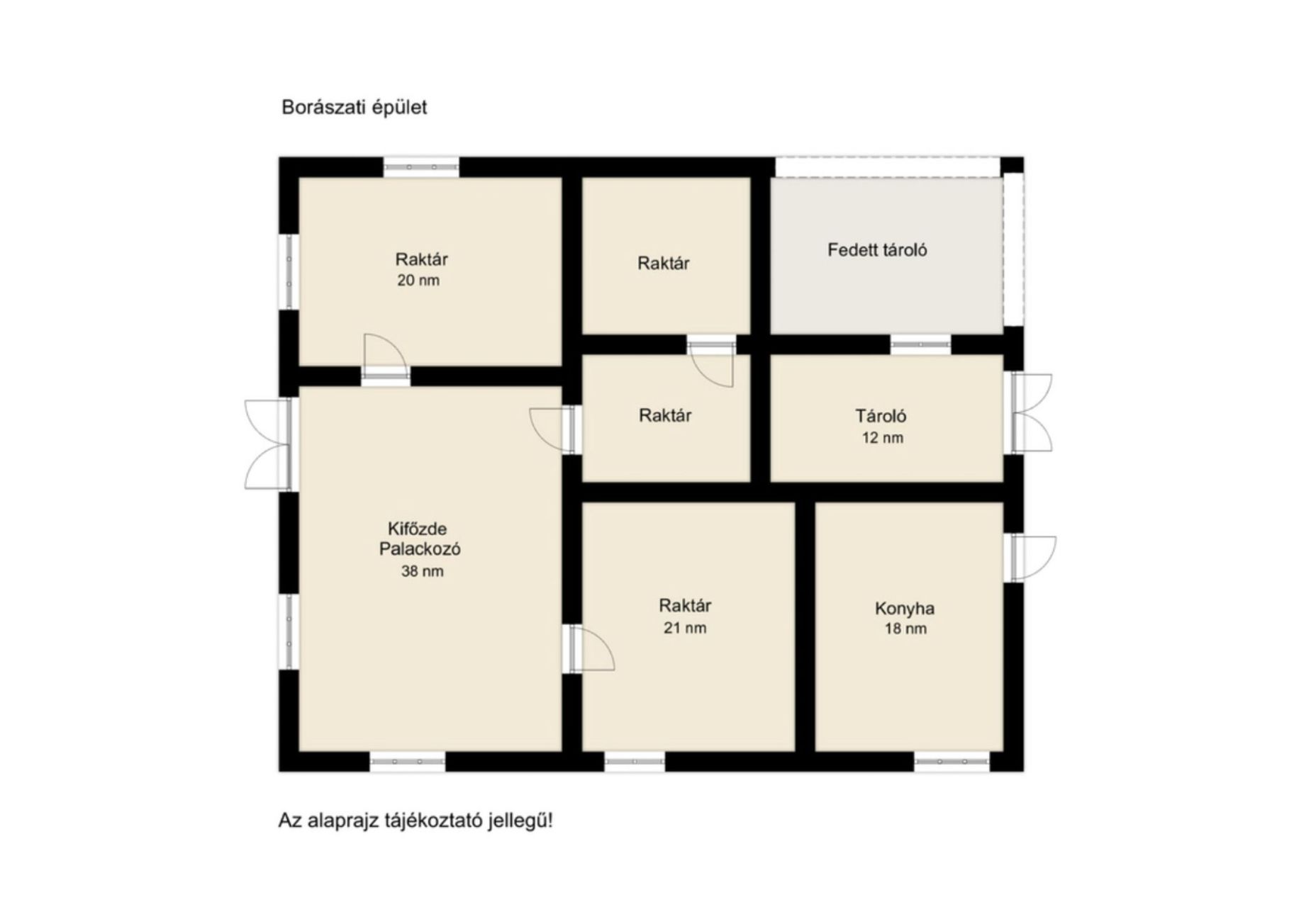- borászati épület konyhával, raktárakkal, tárolókkal,