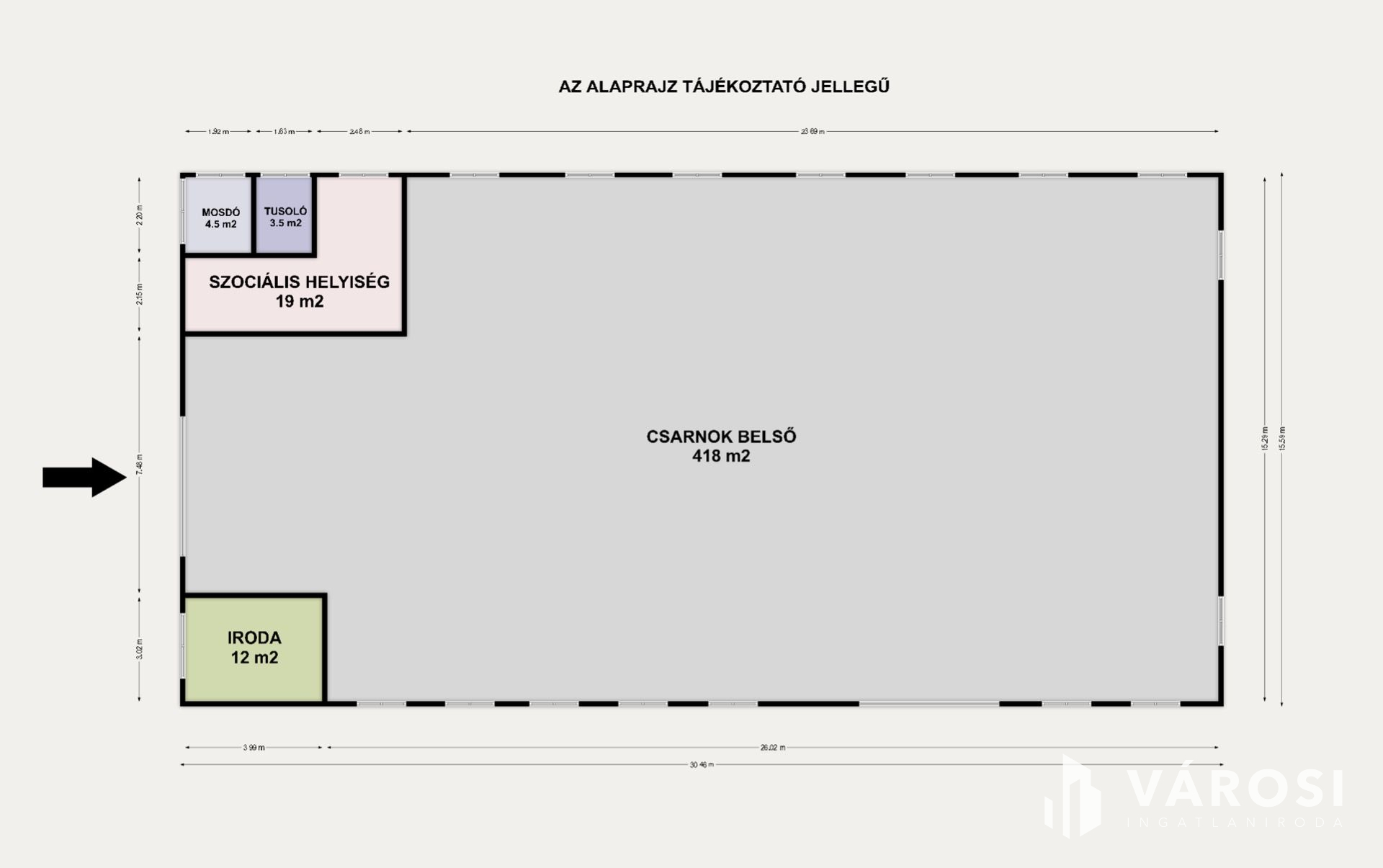 + 457 m2-es csarnok (Méret: 30 m x 15,2 m)