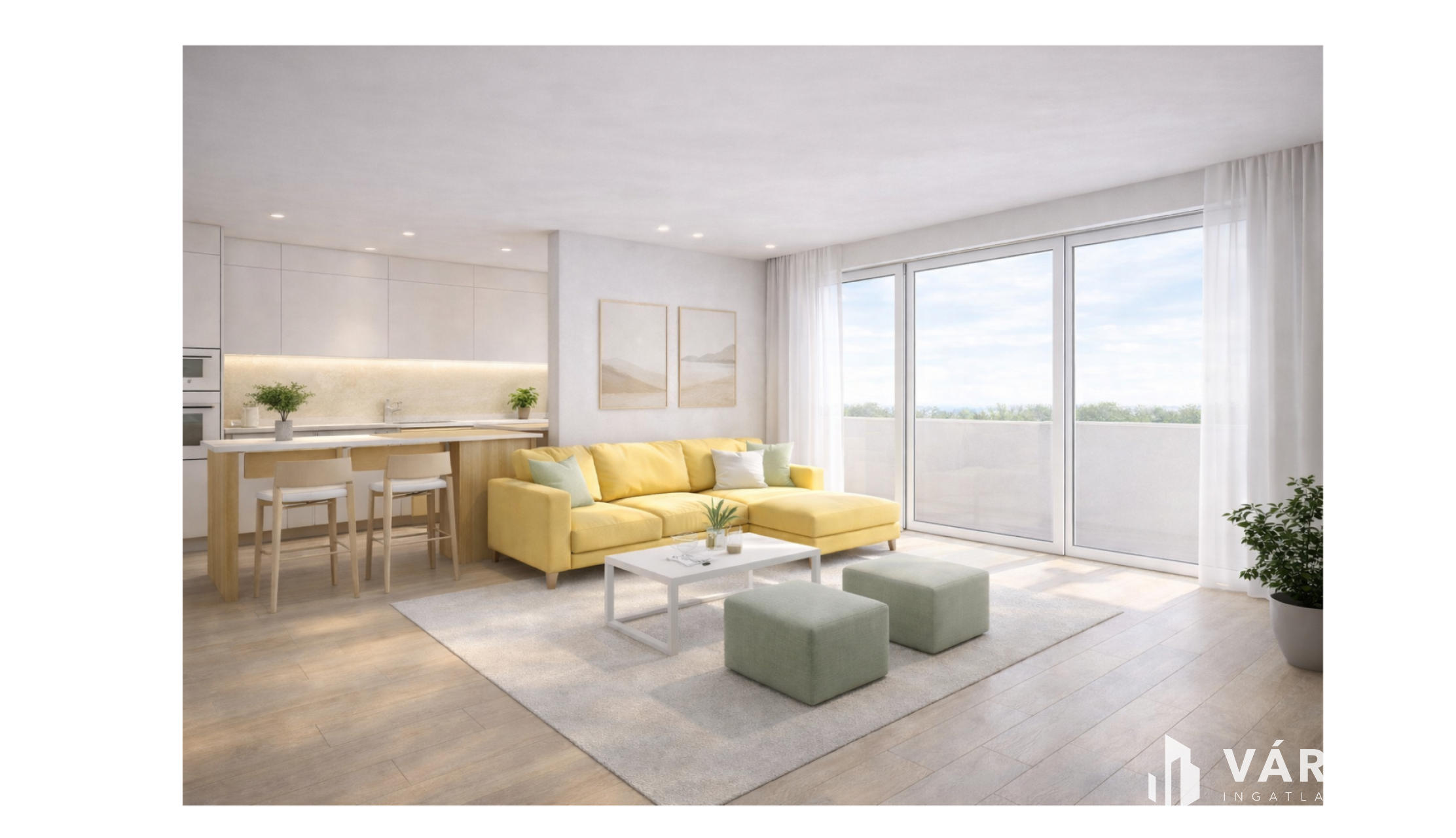 Elrendezés: Kényelmes amerikai konyhás nappali + 2 különnyíló hálószoba, fürdőszoba és külön mellékhelyiség.