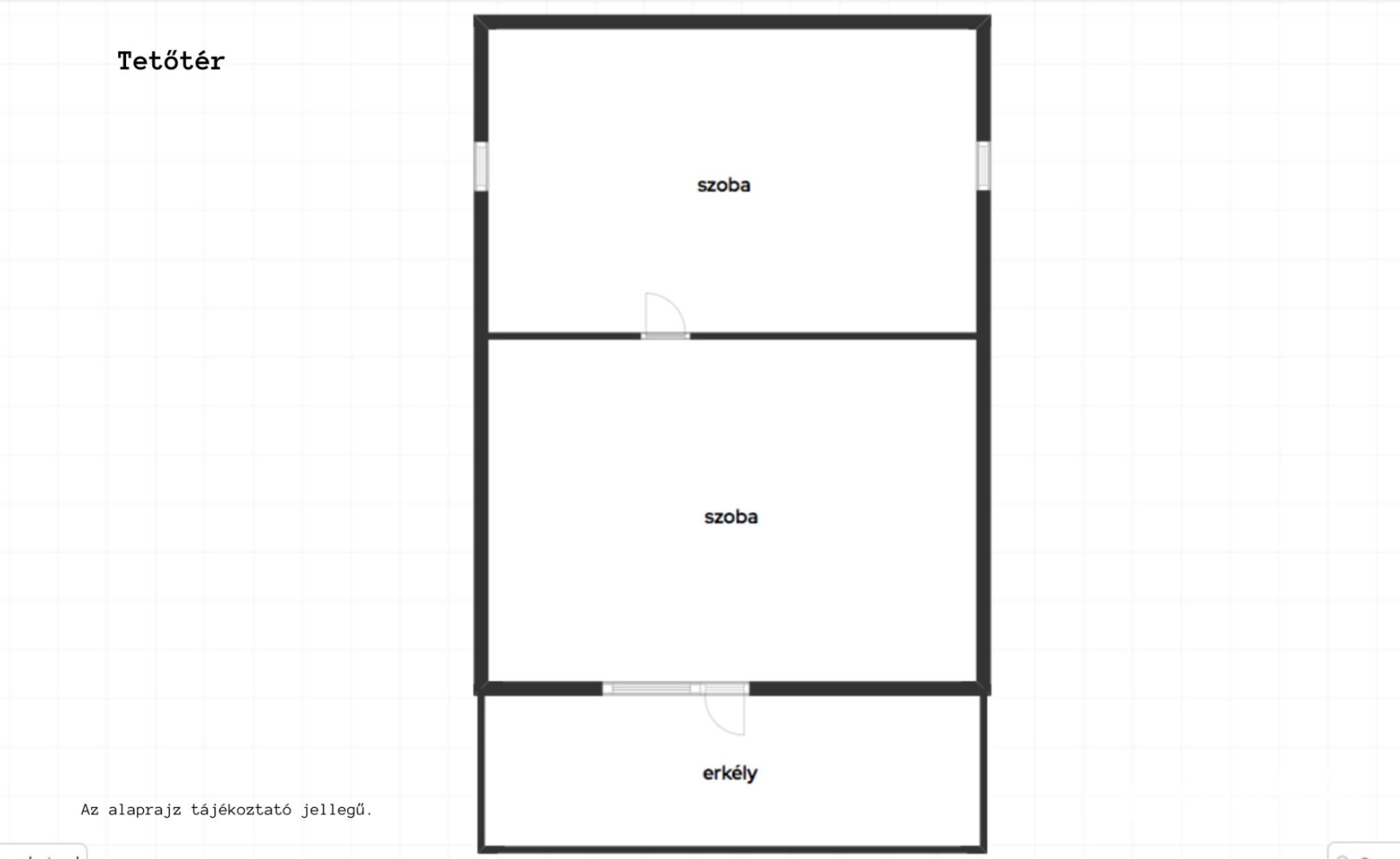 - Elosztás: Földszint: Nappali, konyha, fürdő+wc Tetőtér: 2db szoba