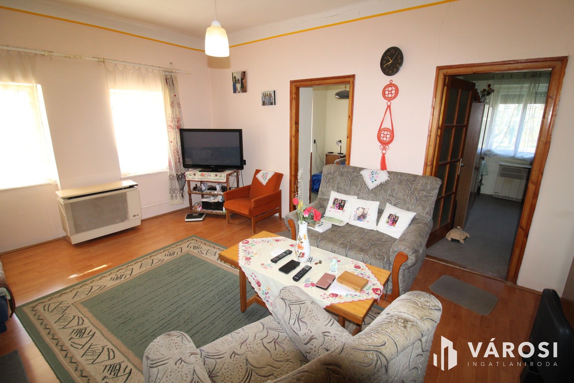A ház elrendezése is kifogástalan, mivel a szobák könnyen átjárhatók, ablakai redőnyözöttek.