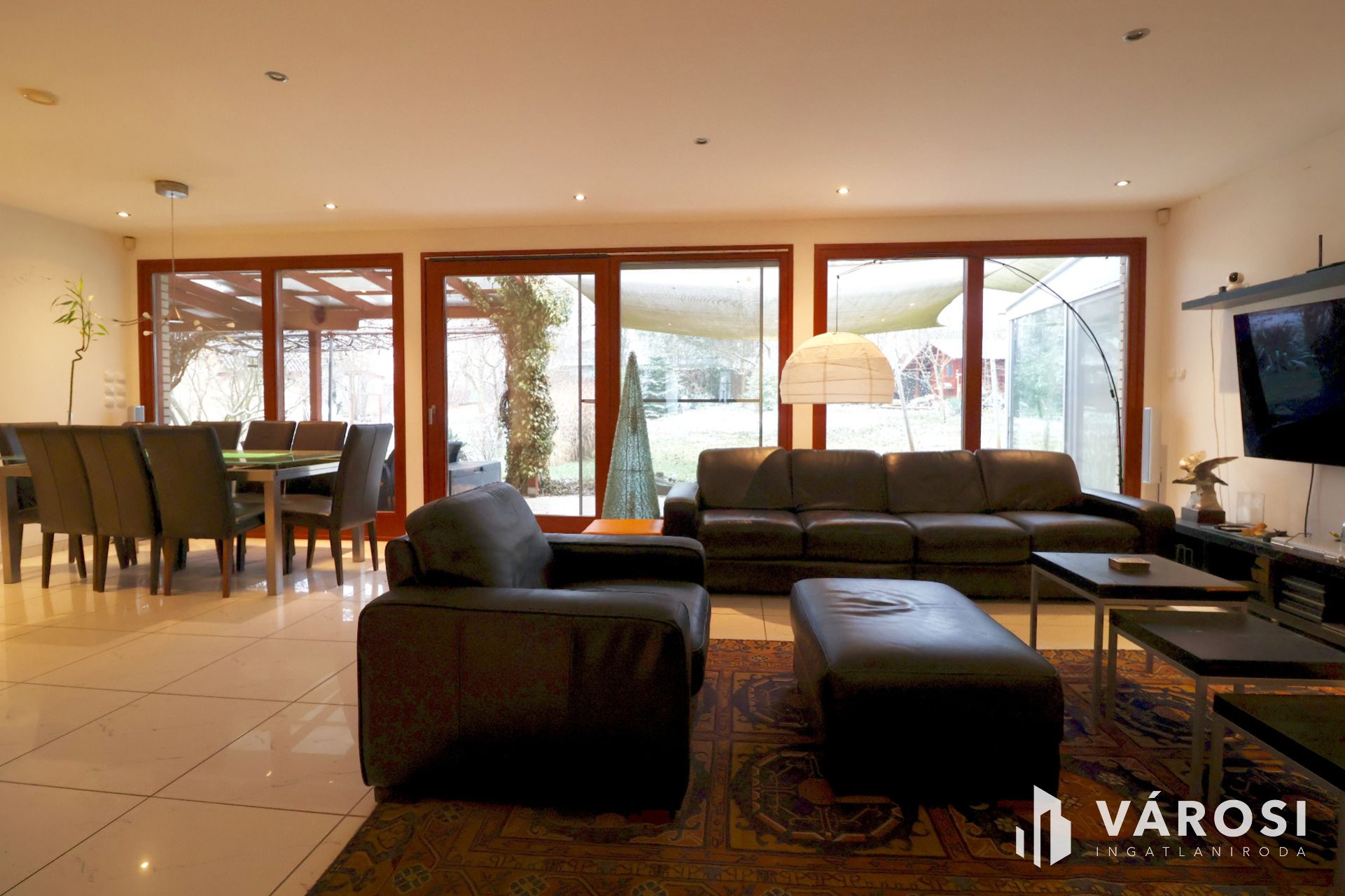 The ~58.00 m2 covered, paved terrace - with an outdoor barbecue - increases the usability of the living space. The two-car garage is ~44.00 m2. Central heating is provided by a Buderus Logano G 124 boiler - with reduced harmful emissions, fully automatic operation.