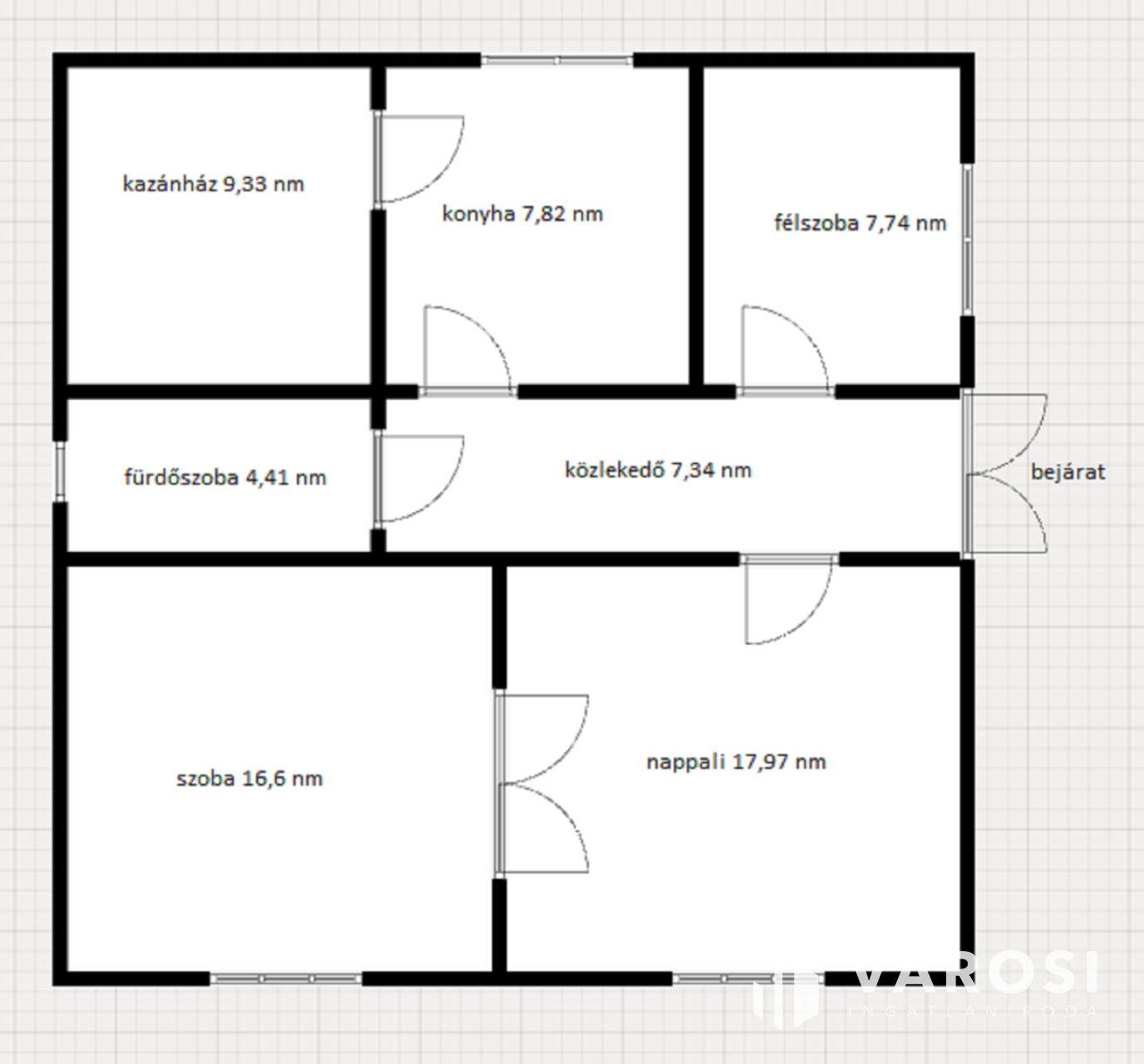 Összetétele: 1 plusz fél szoba, nappali, konyha, közlekedő fürdőszoba és kazánház.