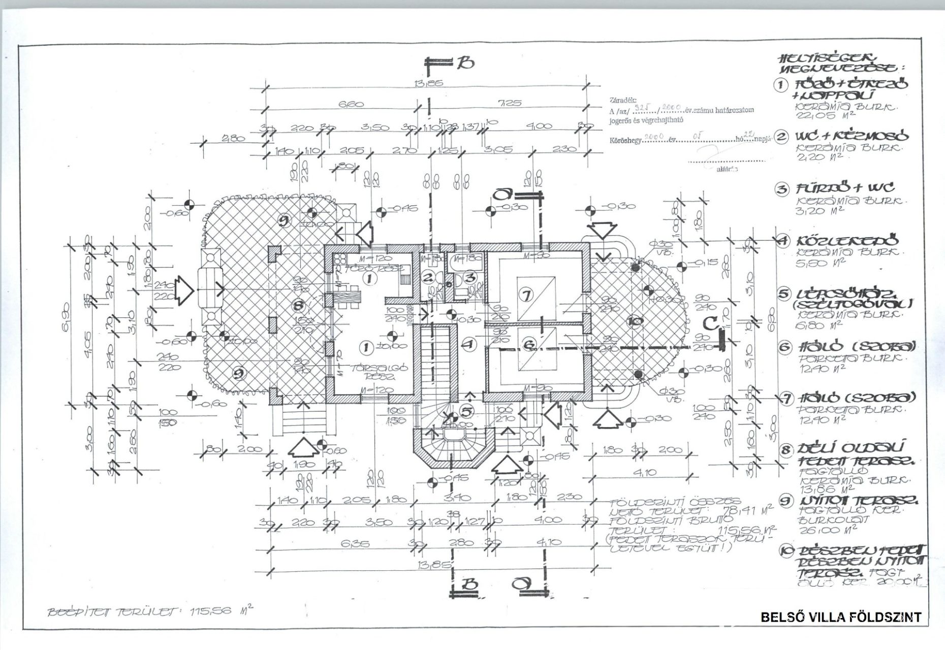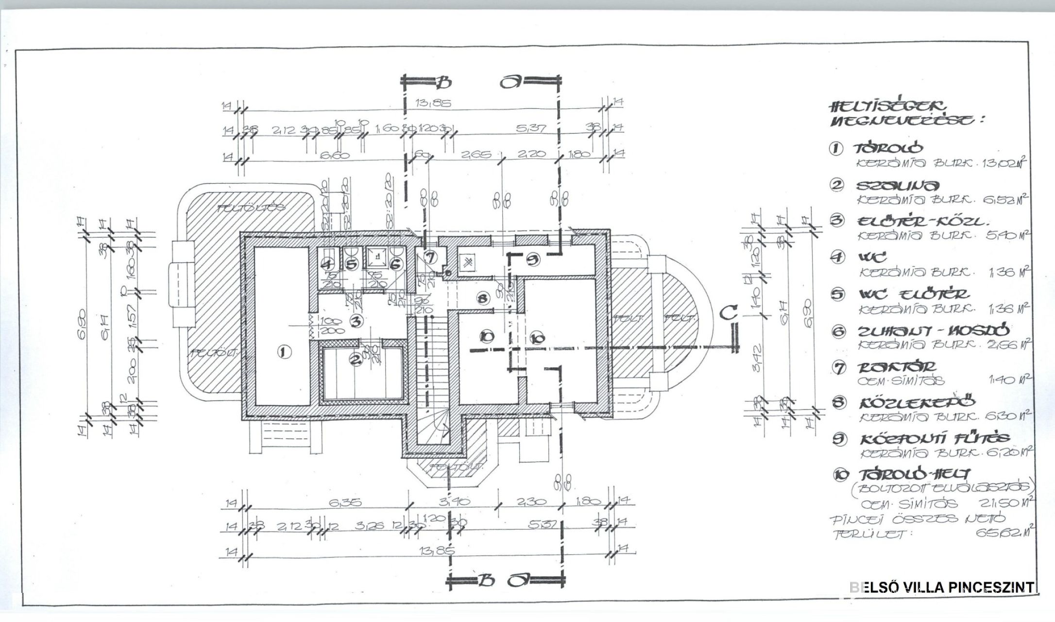 Az épület pinceszintjén a kiszolgáló egységek helyezkednek el: tárolók, szauna, mosókonyha, gépészeti helyiség, zuhanyzó, WC, közlekedő. A földszinten egy amerikai konyhás nappali + étkező, 2 hálószoba, egy fürdőszoba, külön WC, közlekedő és a lépcsőház található. A hatalmas napozóteraszról pillanatok alatt a medencében találhatjuk magunkat. Az emeleten pedig egy előtér, 4 hálószoba és 2 fürdőszoba került kialakításra.
