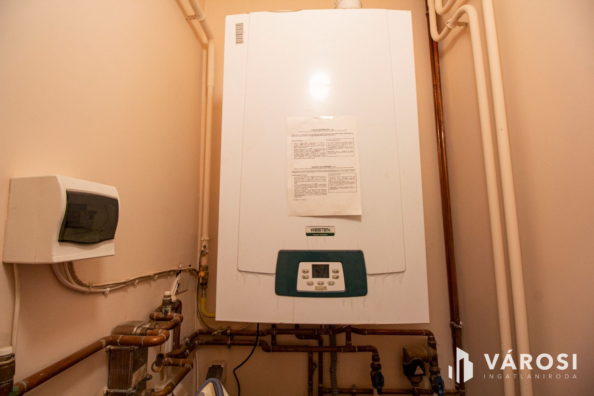 A fűtést és a melegvíz ellátást a 2 éves WESTEN kombikazán szolgáltatja, míg a nyári nagy melegben a komfortérzet biztosításához egy klímát szereltek be.