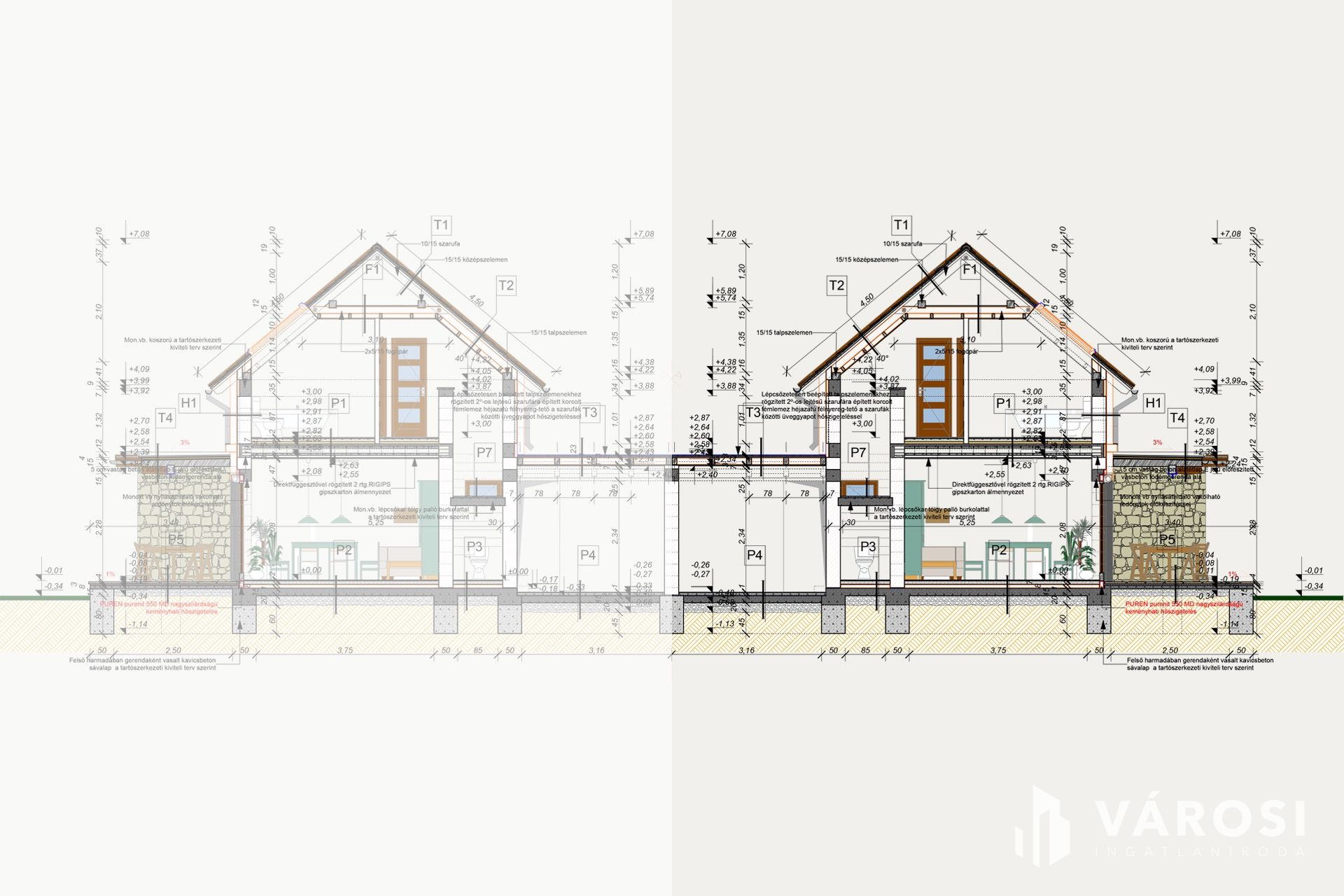 Aljzaton 10 cm-es lépésálló szigeteléssel, míg a tetőszerkezet 20 cm-es kőzetgyapot szigeteléssel.