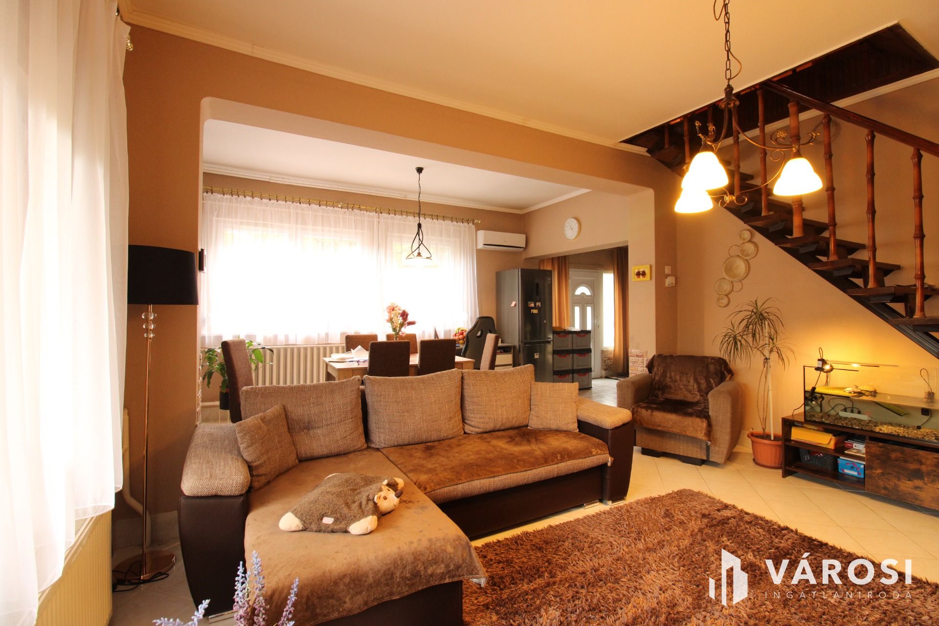 - **Tágas térkialakítás**: Az ingatlan négy szobával, egy tágas nappalival és amerikai stílusú konyhával rendelkezik, így ideális nagyobb családok számára is.