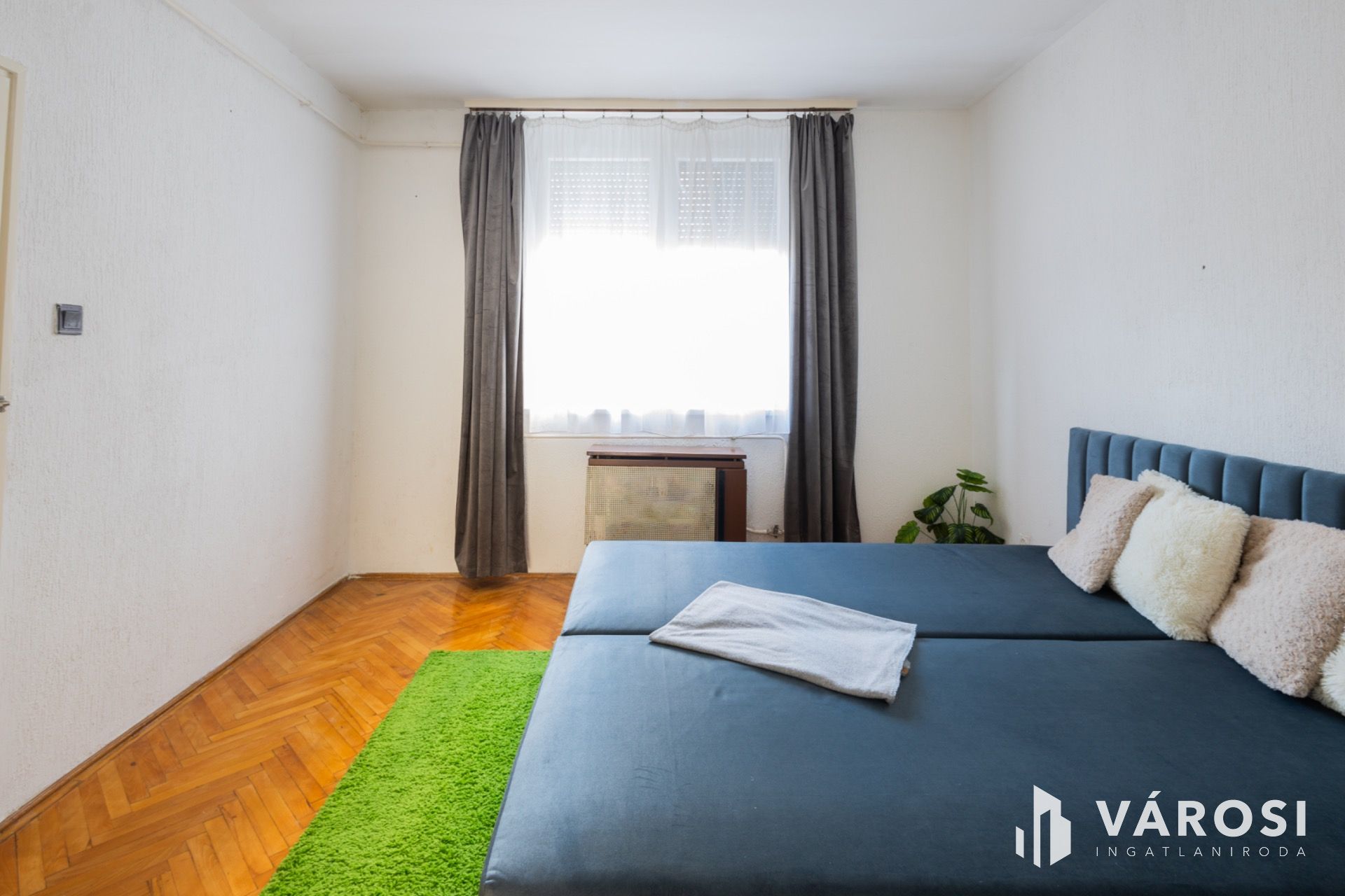 A lakás két tágas szobával és egy nappalival rendelkezik, így a gyerkőcnek is jut saját szoba. A fürdőszoba és a WC külön helyiségben található, ami növeli a komfortot a mindennapokban. A lakásban tágas konyha mellett egy kamra is helyet kapott.