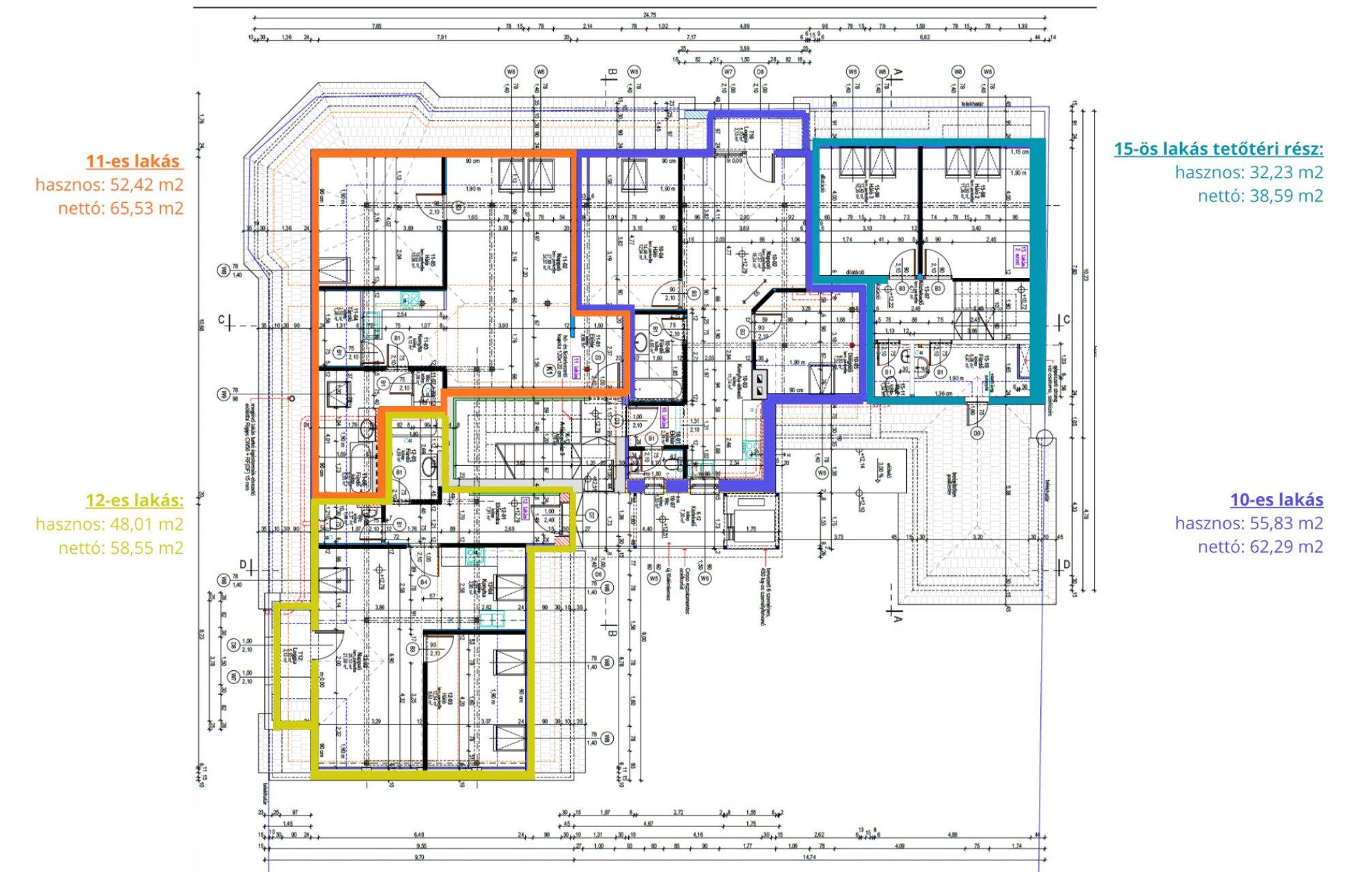 Összesen: 52,42 m2 / 65,53 m2 (hasznos / nettó m2)