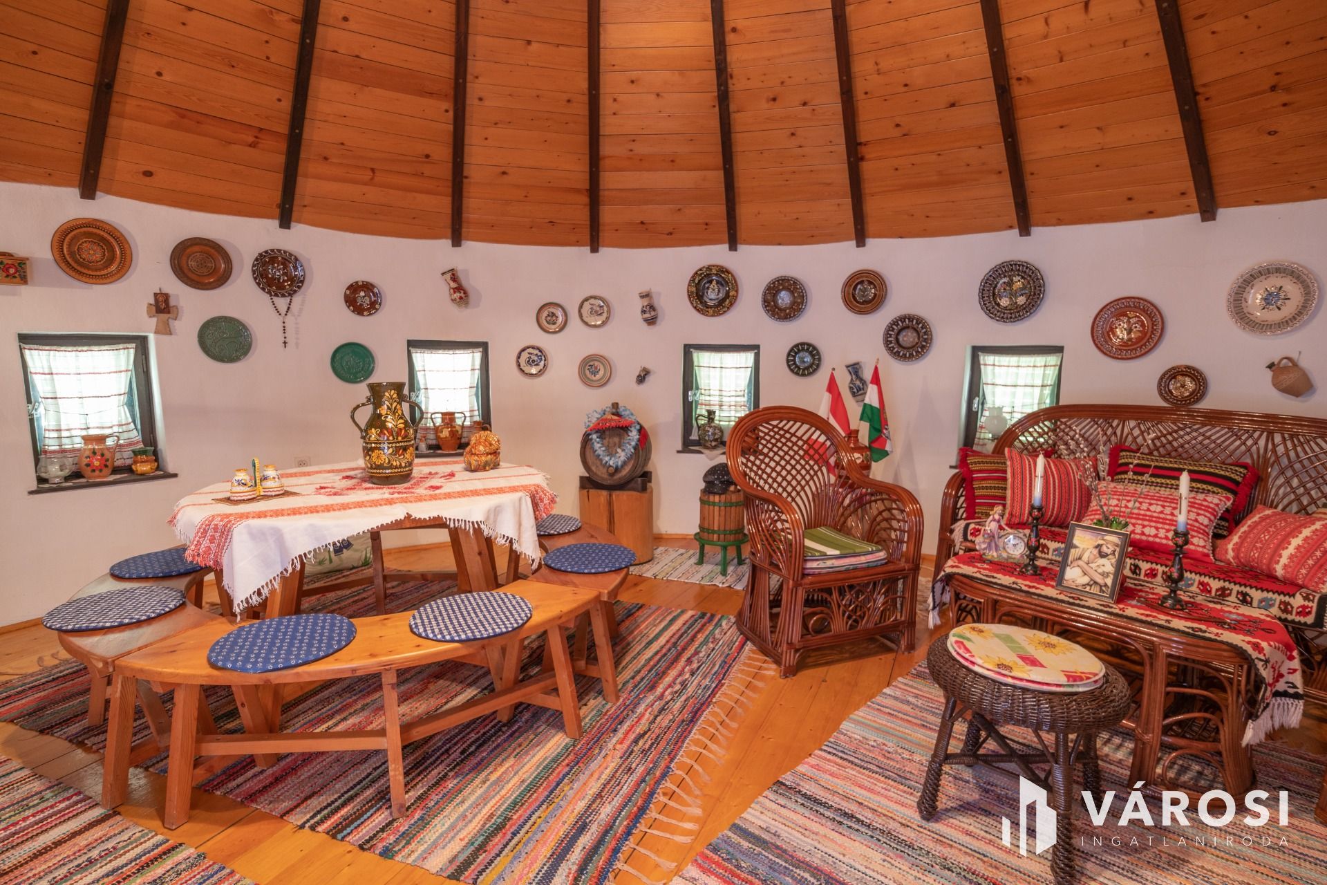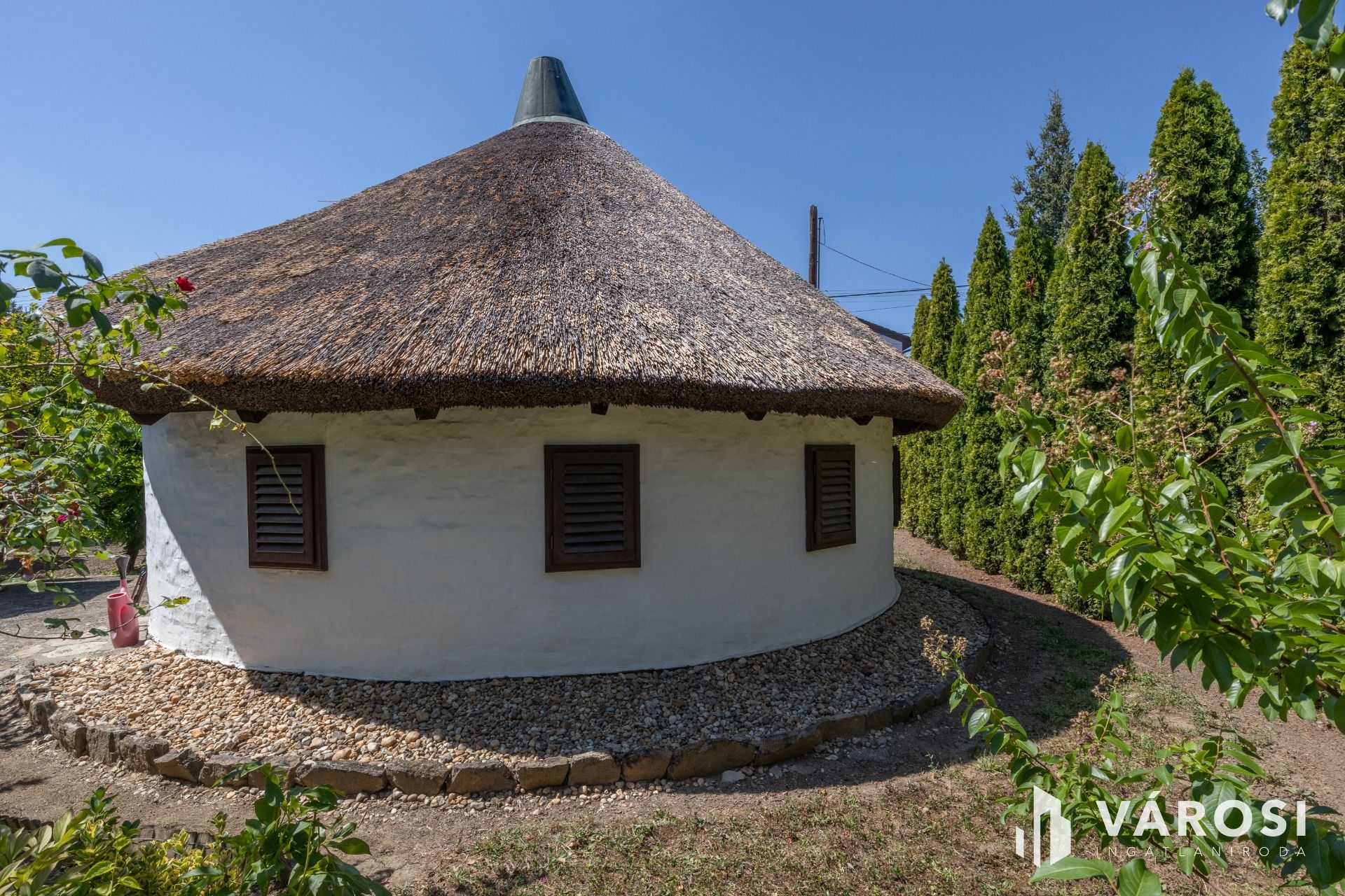 Egy egyedi kivitelezésű '70-es végén Ybl díjas tervező által tervezett 30 m² alapterületű nádfedeles, téglából épült házikó található a telken, amit akár vendégháznak is lehet használni. A szélfogóból belépve egy légtérben egy tágas szoba, ötletes kinyitható konyharésszel, a galérián két fő kényelmesen tud aludni. Fürdőszobában tuskád zuhanyzóval, mosdóval és WC-vel ellátott.