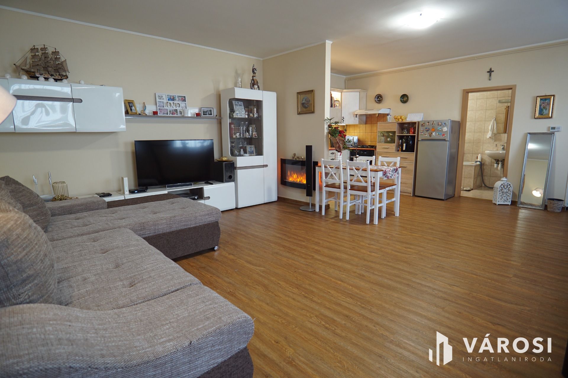 Nagykanizsa Belvárosában vált eladóvá, ez a 61m2-es, modern belső térrel rendelkező, amerikai konyhás, földszinti lakás. A mindösszesen 6 lakásból álló társasház, 2004-ben épült, tégla falazattal, belső zárt udvaros kialakításban. A tulajdonosok 2025-ben kisebb felújítási munkálatokat végeztek a lakásban.